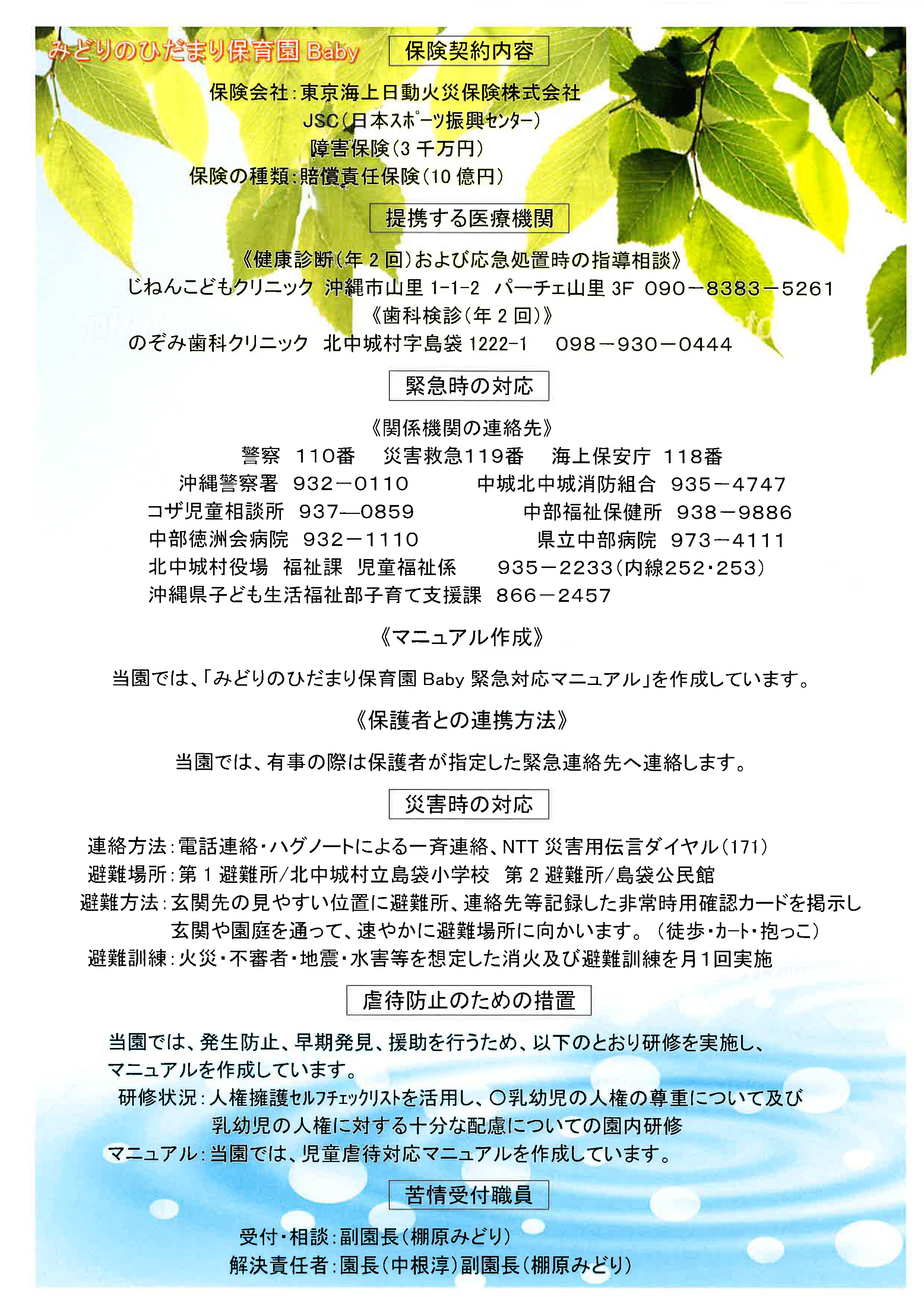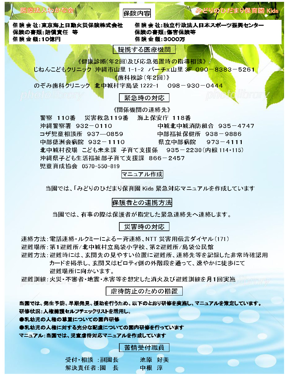 | 園名 | みどりのひだまり保育園 | |
