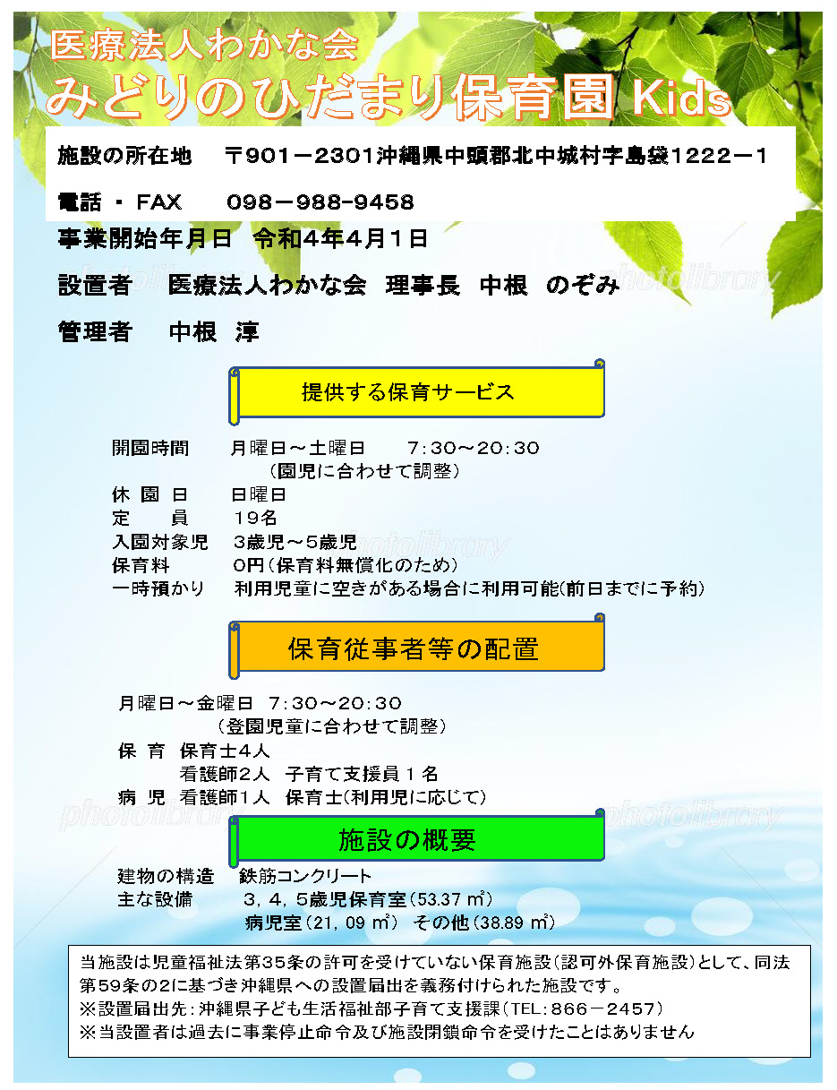 | 事業者 | 医療法人 わかな会 | |